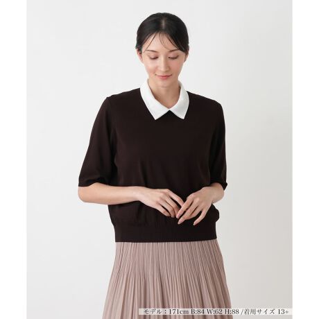 モダンでシンプルな中に個性が光る【NEMIKA】から、着回し力抜群の半袖ニットをご紹介します。アシンメトリーな襟のデザインが、さりげなくお洒落心をくすぐる一枚。デコルテを美しく見せつつ、甘すぎないシャープな印象を与えます。滑らかなニット地は肌触りが良く、暑い季節にも快適な着心地です。ジャケットのインナーとしてもすっきりと収まり、オフィスカジュアルにも最適。ご自宅でのお手入れが可能なのも、日常使いに嬉しいポイントです。いつものボトムスに合わせるだけで、どこかこなれた雰囲気を演出できる、ワードローブの頼れる味方です。