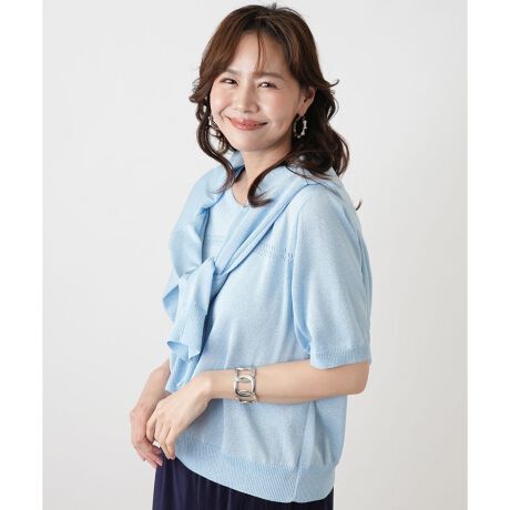 シンプルだからこそ品質の良さが際立つ、半袖のクルーネックセーター。初夏に心地よい、さらりとした肌触りの素材で仕立てました。ベーシックなデザインは着回し力が高く、どんなボトムスとも美しく調和します。一枚で着るのはもちろん、ジャケットやカーディガンのインナーとしても活躍し、首元の詰まったクルーネックが品の良い印象を与えます。ご自宅で手軽にお手入れができるので、汗ばむ季節にも気兼ねなくお召しいただけます。色違いで揃えたくなるほど便利な、大人のデイリースタイルに欠かせない定番アイテムです。同素材のカーディガン(品番: 1601932)とアンサンブルでの着用もおすすめです。