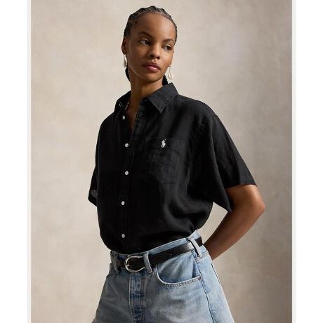 蒸れにくい薄手のリネンを使用したオーバーサイズフィットが特徴的な半袖のシャツ。ユーティリティ風のパッチポケットと、胸にあしらったシグネチャーのポニー刺繍を組み合わせたアイテム。・オーバーサイズフィット:胸とウエストに余裕を持たせた、ゆったりとしたシルエット / 腰下丈・スプレッドカラー / ボタン付き前立て / シェルボタン・半袖 / ドロップショルダー・左胸にパッチポケット / ポケットにシグネチャーのポニー刺繍・ボックスプリーツのバックヨーク / ロッカーループ / 後ろが長いラウンド型にカーブした裾・モデル身長178cm、着用サイズS※商品の色味は、光のあたり具合など諸条件により色感が多少異なって見える場合がございますので予めご了承下さい。 【素材】・本体:麻 100% 装飾部分を除く【生産国】ベトナム