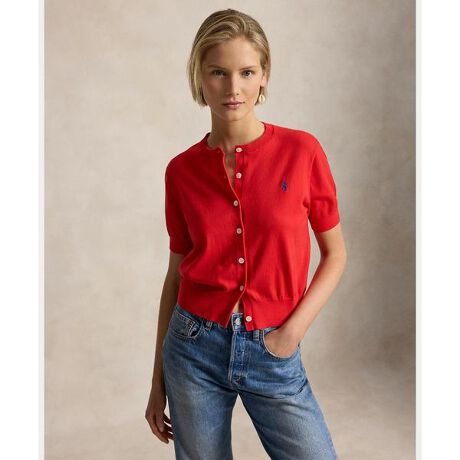 身頃にかけてゆったりとしたシルエットと、ややフィット感のある裾を組み合わせ、洗練された仕上がりを実現した薄手のコットン混紡カーディガン。クラシックなクルーネックラインを施し、左胸にあしらったシグネチャーのポニー刺繍でアクセントをプラス。・ゆったりとしたシルエット、フィット感のある裾 / 腰丈・クルーネック / ボタン付き前立て / シェルボタン・半袖、リブニットのカフス・リブニットの裾・左胸にシグネチャーのポニー刺繍・モデル身長178cm、着用サイズS 【素材】・本体:綿 79%、ナイロン 19%、ポリウレタン 2% 装飾部分を除く【生産国】中国