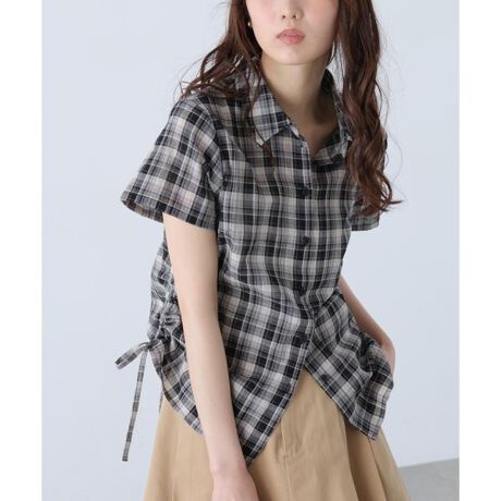 セットインショルダーと体に沿うコンパクトシルエットが特徴のチェックシャツ。両脇のドロストで着丈の調整ができ、絞り具合によってフロント釦が開く仕様です。肌見せやインナーを見せたり、ハイウエストボトムのウエスト部分を見せるとスタイルアップ効果を期待。シアー感のあるチェック柄とカジュアルな配色もポイントです。ワイドデニムやルーズパンツ、ハーフパンツと合わせたボーイッシュなスタイリングがおススメ。ナロースカートやAラインミニスカートとも好相性です。※モデルの着用画像の場合、光の当たり具合により、実際の色味と異なって見えることがございます。色味は、商品単体の画像をご参照ください。