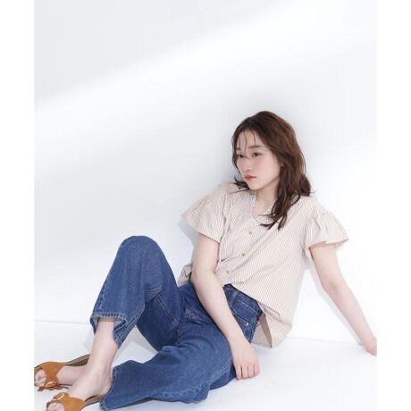 爽やかなストライプ柄が目を引くブラウス。Vネックで顔まわりをすっきりと見せ、立体感のあるフリルネックが華やかなアクセントになっています。動きのあるフレアスリーブで軽やかさを出し、一枚でフェミニンな印象に見せてくれます。<素材>ストライプのシャツ素材を使用しています。<詳細>仕様・前ボタン裏地・なし透け感・なし / 光沢・なし / 伸縮性・なし生地の厚さ・普通※モデルの着用画像の場合、光の当たり具合により、実際の色味と異なって見えることがございます。色味は、商品単体の画像をご参照ください。
