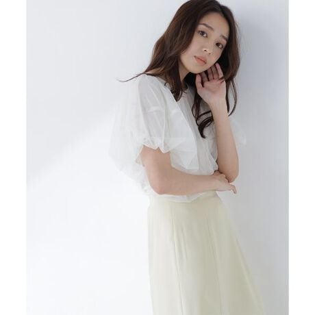 ボリュームのあるバルーン袖が華やかでフェミニンなトップス。透け感のあるチュールとカットソーの組み合わせで、軽やかさと立体感を演出します。後ろネックはリボン開き仕様。カットソー部分だけをボトムにインしてもすっきり着ていただけます。<素材>柔らかく上品なチュール素材を使用しています。<詳細>仕様・後ろリボン裏地・あり透け感・ややあり / 光沢・なし / 伸縮性・ややあり生地の厚さ・薄手※モデルの着用画像の場合、光の当たり具合により、実際の色味と異なって見えることがございます。色味は、商品単体の画像をご参照ください。