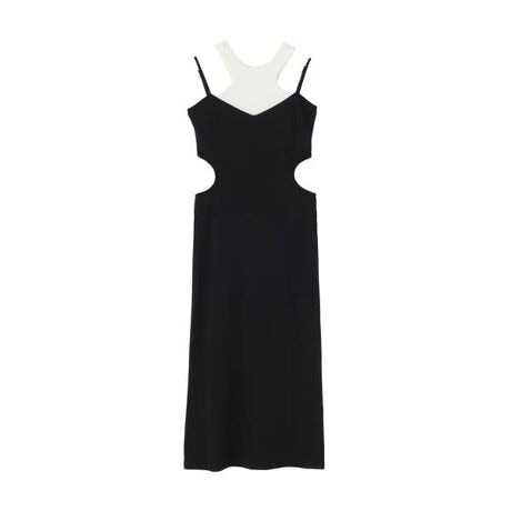 両サイドに大胆なホールデザインを施したエッジの効いたタイトワンピース。