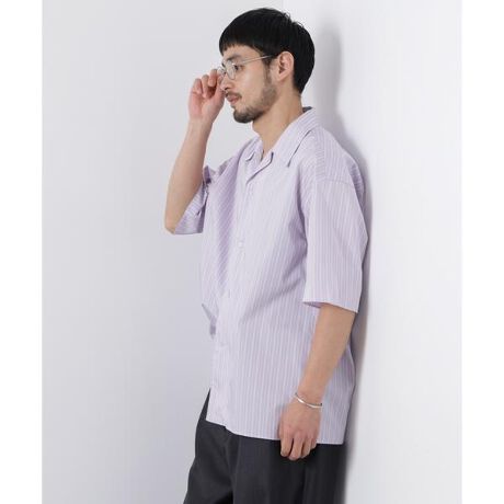 「OtoNANO」オープンカラーストライプ半袖シャツ
