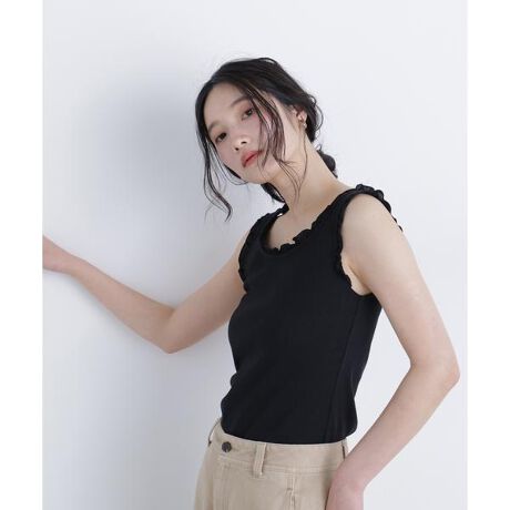 目面のキレイなテレコ素材にシアーフリルをあしらったタンクトップ。程よい厚みで白でも透けにくく、安心感のある着心地です。キャミワンピースやシャツのインナーとしてコーディネートにニュアンスをプラスします。ベーシックカラーに加えて、今年らしいブルーカラーもおすすめで、ブラウンやキャメルカラーのアイテムと合わせると、いっきに今年らしいコーディネートに見せてくれます。<素材>身頃はカットソーのテレコ素材を使用。シアー部分も程よい透け感のある柔らかなカットソー素材を使用しています。<詳細>仕様・開閉なし裏地・なし透け感・なし / 光沢・なし / 伸縮性・あり生地の厚さ・普通※モデルの着用画像の場合、光の当たり具合により、実際の色味と異なって見えることがございます。色味は、商品単体の画像をご参照ください。