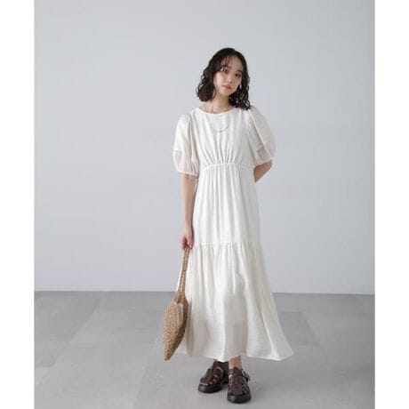 サラッとした合繊生地を使用し、トレンド感のあるフォルムが目を引くランタンスリーブのワンピース。色によって袖の素材が異なり、無地はシアー素材を切り替え、ギンガムチェック柄は同色素材を切り替えてすっきりさせたデザインです。前襟は浅めのラウンドネックで、後ろはVカットにタブを付けて抜け感をプラス。後ろウエストはシャーリングゴムで着心地が良いです。ウエストの切り替え位置がやや高めなのでスタイルアップも叶います。合わせるシューズや小物使いで様々なコーディネートを楽しめます。※こちらの商品はXSサイズの展開がございます。◆サイズ目安◆XSサイズ→身長150cm-152cm ウエスト57cm-59cm※モデルの着用画像の場合、光の当たり具合により、実際の色味と異なって見えることがございます。色味は、商品単体の画像をご参照ください。