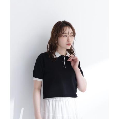 襟と袖口のトレンド感のある配色がポイントのダブルカラーポロニット。ベーシックながらこなれ感のあるデザインです。さらっと軽いニット素材で季節を問わず着やすく、ボタンを開ければ抜け感のある着こなしも楽しめます。<素材>程よいハリ感のある天竺編みニットです。<詳細>仕様・前ボタン裏地・なし透け感・なし / 光沢・なし / 伸縮性・あり生地の厚さ・普通※モデルの着用画像の場合、光の当たり具合により、実際の色味と異なって見えることがございます。色味は、商品単体の画像をご参照ください。