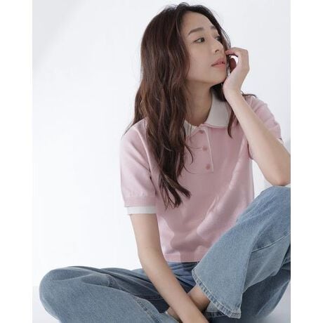 襟と袖口のトレンド感のある配色がポイントのダブルカラーポロニット。ベーシックながらこなれ感のあるデザインです。さらっと軽いニット素材で季節を問わず着やすく、ボタンを開ければ抜け感のある着こなしも楽しめます。<素材>程よいハリ感のある天竺編みニットです。<詳細>仕様・前ボタン裏地・なし透け感・なし / 光沢・なし / 伸縮性・あり生地の厚さ・普通※モデルの着用画像の場合、光の当たり具合により、実際の色味と異なって見えることがございます。色味は、商品単体の画像をご参照ください。