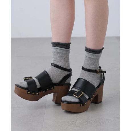 [型番:1316193012]ウッド調の厚底ソールに金具とスタッズが映えるサンダル。一体底で安定感があり、ヒールの高さを感じにくく歩きやすいです。フック式のアンクルストラップで着脱が楽ちん。素足はもちろん、ソックス合わせもしやすく、ロングシーズン活躍します。※モデルの着用画像の場合、光の当たり具合により、実際の色味と異なって見えることがございます。色味は、商品単体の画像をご参照ください。