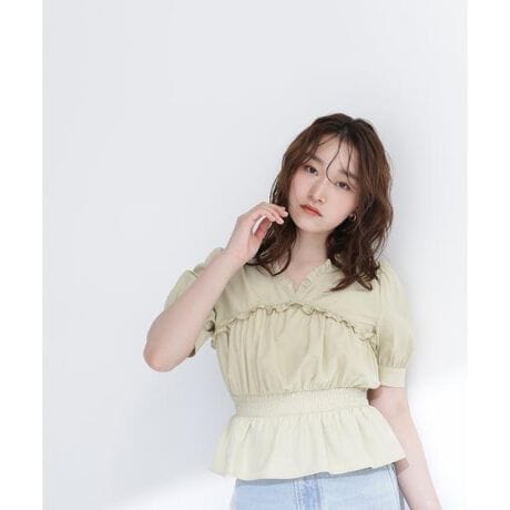 フリルディテールがポイントの着映えブラウス。身頃の切り替え部分にギャザーとフリルをあしらい、一枚で華やかな印象に見せてくれます。程よいハリ感のあるブロード素材で、フェミニンなデザインでも甘くなりすぎず上品に着ていただけます。袖はギャザーをいれたパフスリーブデザイン、ウエストはゴムシャーリング仕様のペプラムシルエット。ナロースカートやストレートパンツ、デニムとのカジュアルダウンもおすすめです。<素材>程よくハリ感のあるブロード素材を使用しています。<詳細>仕様・開閉なし裏地・なし透け感・なし / 光沢・なし / 伸縮性・なし生地の厚さ・普通※モデルの着用画像の場合、光の当たり具合により、実際の色味と異なって見えることがございます。色味は、商品単体の画像をご参照ください。