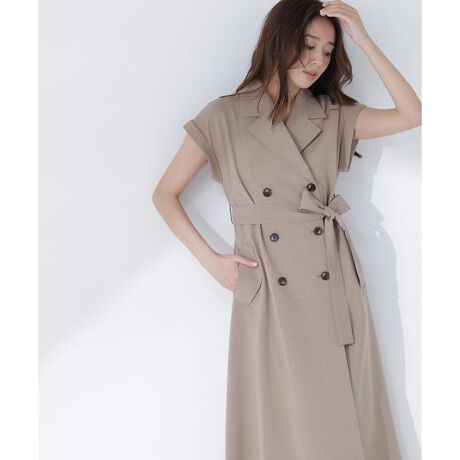 甘さを抑えつつ抜け感のあるハンサムレディなトレンチワンピース。やや立ち上がった襟や太めのベルテッドデザインがシャープな印象に見せ、襟元のほどよい開きとフィット&フレアシルエットで女性らしさを取り入れたデザイン。袖はフレンチスリーブで二の腕をカバーします。裾は奥で縫われているため、下着や脚が見えることなく着ていただけます。<素材>さらっとしたタッチの合繊素材を使用しています。<詳細>仕様・前ボタン裏地・なし透け感・なし / 光沢・なし / 伸縮性・なし生地の厚さ・普通※モデルの着用画像の場合、光の当たり具合により、実際の色味と異なって見えることがございます。色味は、商品単体の画像をご参照ください。