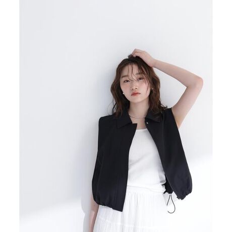 軽やかに着られるノースリーブデザインのステンカラージレ。裾のドローストリングでシルエット調整が可能です。さっと羽織るだけでこなれた印象に仕上がり、幅広いスタイリングに活躍します。<素材>ほどよいハリと軽さのあるタフタ素材を使用。さらっとした表面感でキレイなシルエットをキープします。<詳細>仕様・前ファスナー裏地・なし透け感・なし / 光沢・なし / 伸縮性・なし生地の厚さ・普通※モデルの着用画像の場合、光の当たり具合により、実際の色味と異なって見えることがございます。色味は、商品単体の画像をご参照ください。
