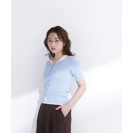 顔まわりをすっきり見せるVネックのスキッパーニット。配色ニットを重ね着したように見えるレイヤードライクデザインです。貝調ボタンがさりげないアクセント。程よく体にフィットするコンパクトシルエットで、ワイドボトムスと合わせやすいです。<素材>整った表面の総針編みニットです。<詳細>仕様・開閉なし裏地・なし透け感・なし / 光沢・なし / 伸縮性・あり生地の厚さ・普通※モデルの着用画像の場合、光の当たり具合により、実際の色味と異なって見えることがございます。色味は、商品単体の画像をご参照ください。