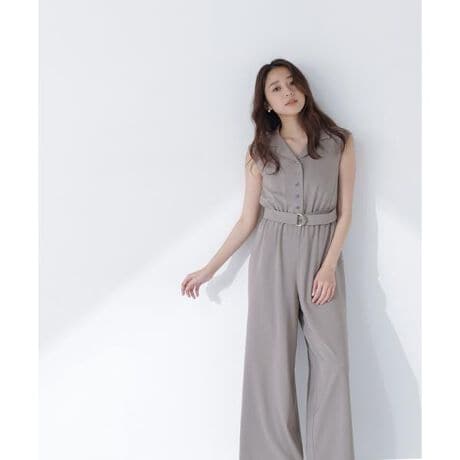 大人っぽさと程よい抜け感のある開襟オールインワン。テーラー襟とフロントの貝調ボタンがアクセントになっています。ウエストはゴム仕様でストレスフリーな着心地ながら、共地のDカン付きベルトでウエストマークができ、キレイ見えするシルエットに。キレイめシーンからデイリーまで幅広く着まわせます。便利なスラッシュポケット付き。<素材>程よく落ち感のある合繊リネンライク素材を使用しています。<詳細>仕様・前ボタン裏地・なし透け感・なし / 光沢・なし / 伸縮性・なし生地の厚さ・普通※モデルの着用画像の場合、光の当たり具合により、実際の色味と異なって見えることがございます。色味は、商品単体の画像をご参照ください。
