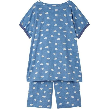 [型番:UDT119]・本体に、肌ばなれのよい綿100%の楊柳素材を使用・色々な表情のネコの顔や雲を表現した柄※お洗濯は、必ず「取扱い表示」にしたがってください。
