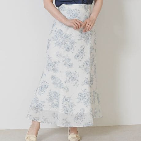 ミッシュマッシュオリジナルのフラワージュイプリントを施したスカート。