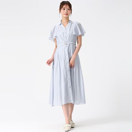 ケープのような立体感を演出する、フレア袖デザインのシャツワンピース。