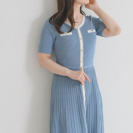 2026春夏新作 ラメ配色AラインVネックニットワンピース