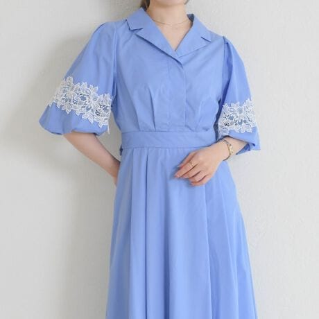 2026春夏新作 レース切替バルーンスリーブシャツワンピース