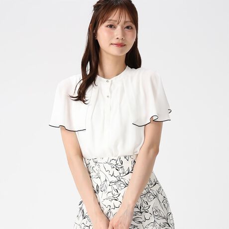 ひらりと舞うケープ袖が印象的な、シフォンジョーゼット素材のブラウス。