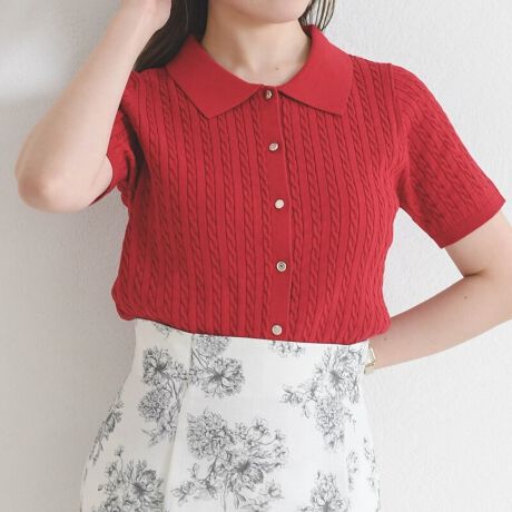 2026春夏新作 ケーブルポロ襟ニット