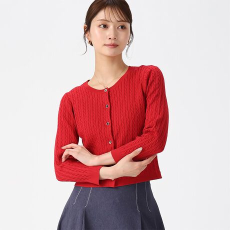 コンパクトなシルエットが魅力のミニケーブルカーディガン。