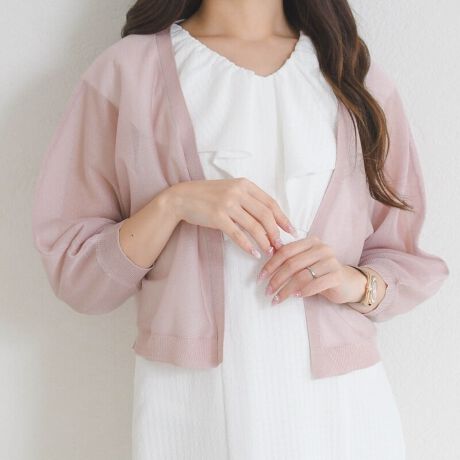 女性らしいシアーな透け感がトレンド感を演出する、ボレロタイプのカーディガン。