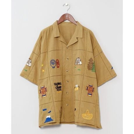 [型番:IAC-6124-2026]【Amina×grn×ogawa】アウトドアの世界観を刺しゅうで表現した開襟シャツ。自然と繋がる外遊びを楽しむカジュアルなTシャツ。