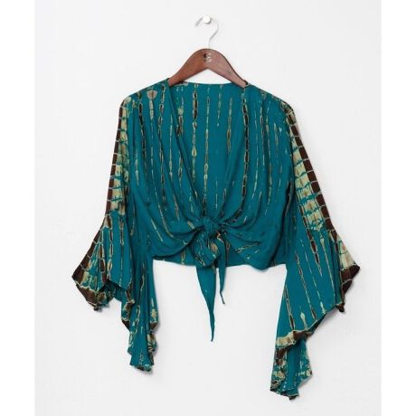 [型番:TLG-6120-2026]【タイ直輸入】しぼり染めが涼し気な短丈のカーディガン。軽やかなレーヨン素材で、前をリボン結びで着こなせばリゾートなコーデが楽しめる。