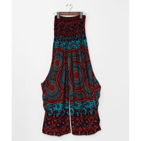 [型番:TLG-6126-2026]【タイ直輸入】大胆な曼荼羅柄と変形シルエットが目を惹くレディースパンツ。レーヨン素材で着心地よく、リラックスコーデに最適。