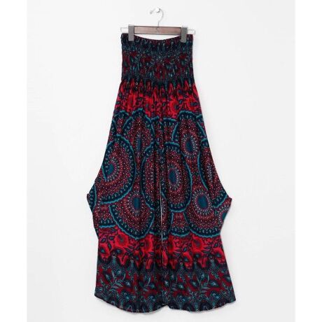 [型番:TLG-6126-2026]【タイ直輸入】大胆な曼荼羅柄と変形シルエットが目を惹くレディースパンツ。レーヨン素材で着心地よく、リラックスコーデに最適。