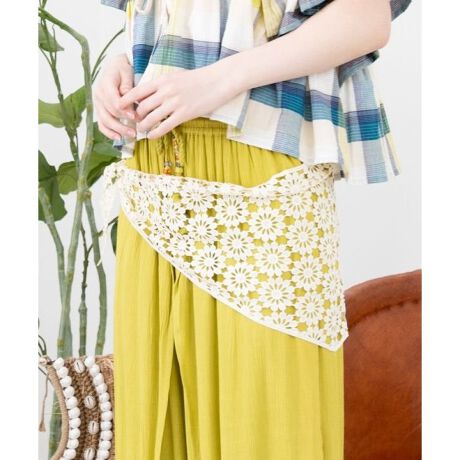 [型番:CKOP6111-2026]幾何柄の透かし模様が映える三角巾型レースストール。適度なハリ感と柔らかさをあわせ持ち、顔まわりを明るく演出。いつものコーデにさりげない華やかさを。