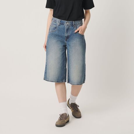 トレンドムードたっぷりのバギーショートジーンズ。