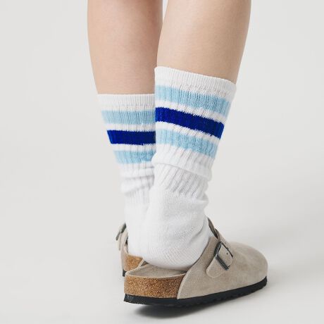 メンズで展開していたデザインを、女性用のサイズに落とし込んだ別注の<THE RAILROAD SOCK>ラインソックス。