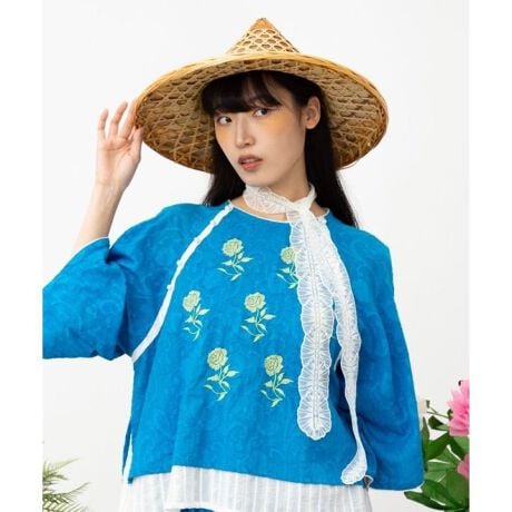 [型番:CKOP6107-2026]繊細な細レースが印象的なストール。透け感のあるデザインで、首や頭、腰に巻いて軽やかなスタイリングを楽しめる。アクセ感覚で取り入れたい華やぎアイテム。