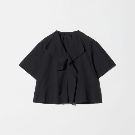 大きく波打つラッフルが軽やかなムードのシャツブラウス