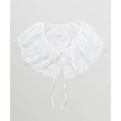 細やかな刺しゅうが映えるレースWAYスカーフ。ひも付きデザインで調整しやすく、首元や腰、付け襟スタイルなど自由なアレンジで楽しめる。