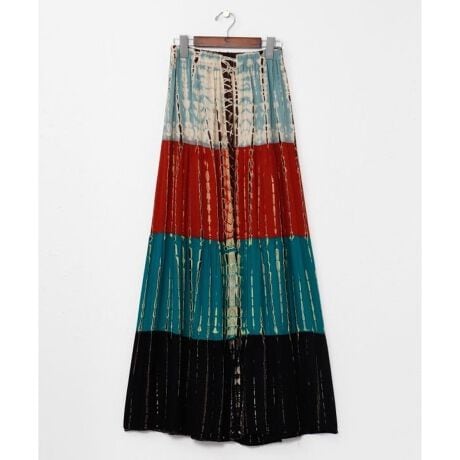[型番:TLG-6123-2026]【タイ直輸入】絞り染めが目を惹くティアードスカート。肌触り優しいレーヨン生地で快適な着心地。4段の色絞りと動きのあるシルエットが存在感を演出。