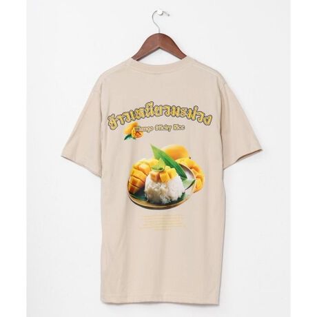 [型番:TLG-6110-2026]【タイ直輸入】「マンゴースティッキーライス」をモチーフにしたユーモラスなTシャツ。前後にデザインされたプリントが視線を引き、エスニックフードマーケットを連想させる仕上がりに。ユニセックスで楽しめる一枚。