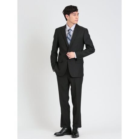 ストレッチウォッシャブル スリムフィット 2ボタン2ピース リクルートスーツ 黒無地