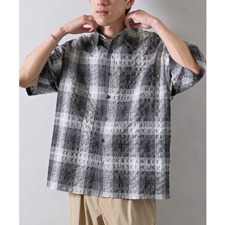 落ち着いた配色のミニチェックが魅力の半袖シャツです。細やかなチェック柄が上品なカジュアル感を演出し、シンプルなコーディネートにもさりげないアクセントを加えてくれます。程よくゆとりのあるボクシーシルエットで動きやすく、リラックスした着心地を楽しめるのもポイントです。軽やかで清涼感のある素材感のため、暖かい季節でも快適に着用できます。一枚で着るだけでなく、前を開けて羽織りとして使うことでスタイリングの幅が広がります。デニムやスラックス、ショートパンツなどさまざまなボトムと合わせやすく、カジュアルシーンから日常のコーディネートまで活躍します。爽やかで軽やかな印象を与える、着回ししやすいチェックシャツです。