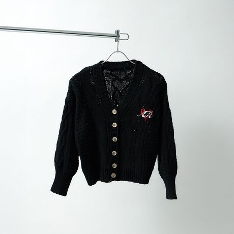 ・大きめボタンのアクセントが効いたカーディガン。
