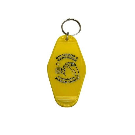 「Delicious&Happiness」コーヒーのオリジナルキーホルダー。懐かしいモーテルキーホルダーに、コーヒータイムのイラストをプリント。鍵やバッグに付けるだけで、さりげなく気分が上がる小物になります。