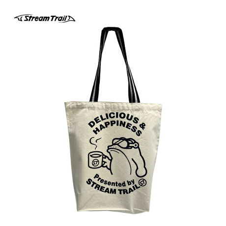 「Delicious&Happiness」コーヒーのオリジナルトートバッグ。しっかり肩に掛けられる長めの持ち手で、通勤・通学や買い物、サブバッグにも便利。軽くて畳みやすいので、普段のバッグに入れておけば荷物が増えた時にも活躍します。