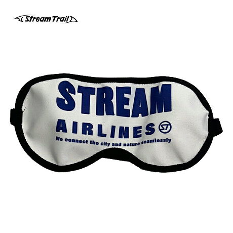 架空の航空会社「STREAM AIRLINES」の機内アメニティをイメージしたアイマスクです。大きめのロゴとスローガンをあしらった、旅気分を楽しめるデザイン。移動中の仮眠はもちろん、就寝時の光対策や在宅ワークの休憩にも使えます。