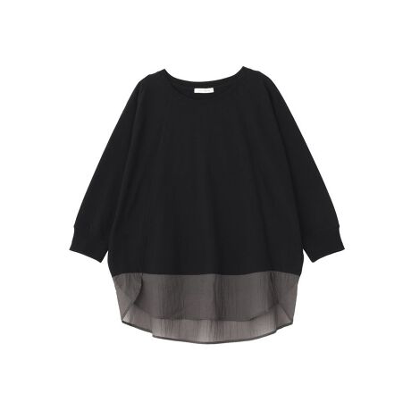 異素材が映える、軽やか上品プルオーバーやわらかな裏毛素材と透け感のあるシアー素材を組み合わせた、上品な印象のプルオーバーです。裾からのぞくシアー生地が軽やかな動きを生み、シンプルながらも着映えするデザインに仕上がっています。ゆとりのあるドルマンシルエットと七分袖が、リラックス感と抜け感を演出し、体のラインをさりげなくカバーしてくれるのも魅力です。パンツにもスカートにも合わせやすく、カジュアルからきれいめまで幅広いスタイリングに対応します。季節の変わり目にも活躍し、毎日のコーディネートを品よく整えてくれる一枚です。透け感[なし]