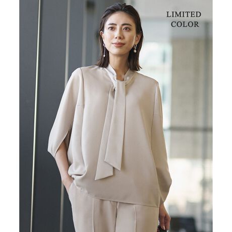 【WEB限定カラーあり】FluidBackSatin ドルマンスリーブボウタイブラウス