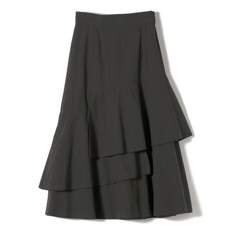 コットンの打ち込みのいい生地のハリでシルエットを出し、適度なカジュアル感を与えてくれるティアードスカート。