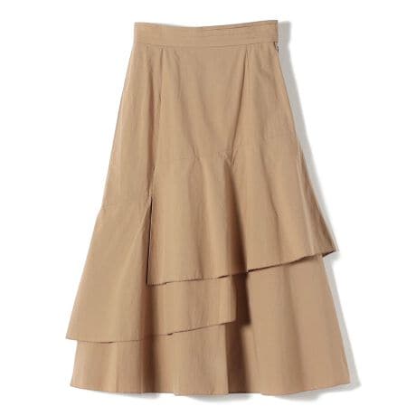 コットンの打ち込みのいい生地のハリでシルエットを出し、適度なカジュアル感を与えてくれるティアードスカート。